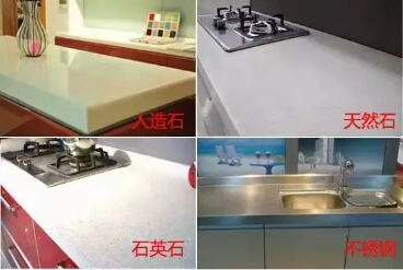 廚房臺面常見的有石英石、人造石、天然石、不銹鋼四種。其中,不銹鋼一般用在餐飲行業(yè)里,不適合家用,石英石材質(zhì)非常昂貴。一般以天然石和人造石臺面最常見,性價比高,美觀、耐污。