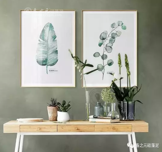 沒有多余花樣,只有肌理清晰的硅藻泥工藝。
