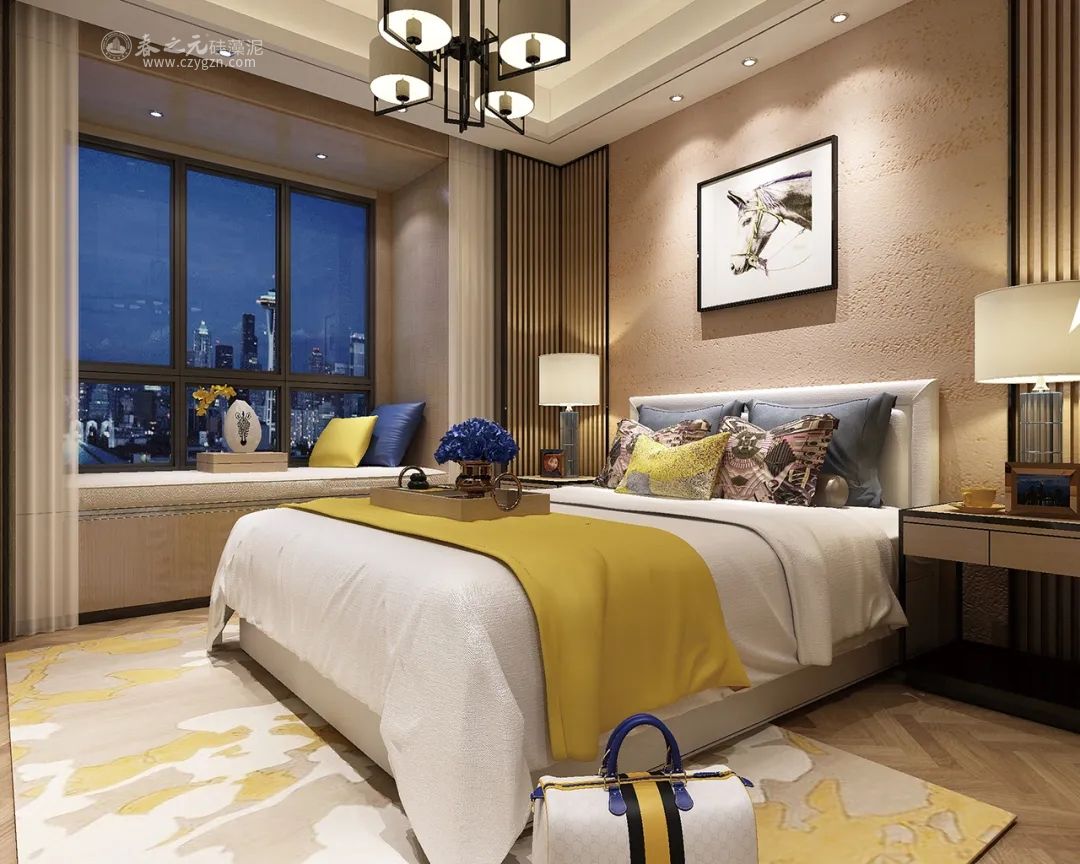 有研究表明啊,室內(nèi)以暖色調(diào)為主的話,可以有效促進人體睡眠效果、加速人體進入熟睡狀態(tài),且有保護視力的效果。而在暖色中“淺黃色”則對人體效果更明顯。試想下,家里臥室搭配上這種淺黃色古羅馬洞石工藝的內(nèi)墻裝飾,整體氣氛那叫一個倍感溫馨。當(dāng)然我可以很明確地告訴你一點,它不反光,但是抵不住人家它自然微黃啊。在臥室床頭燈照亮,這個氣氛給的不多不少剛剛好有木有。