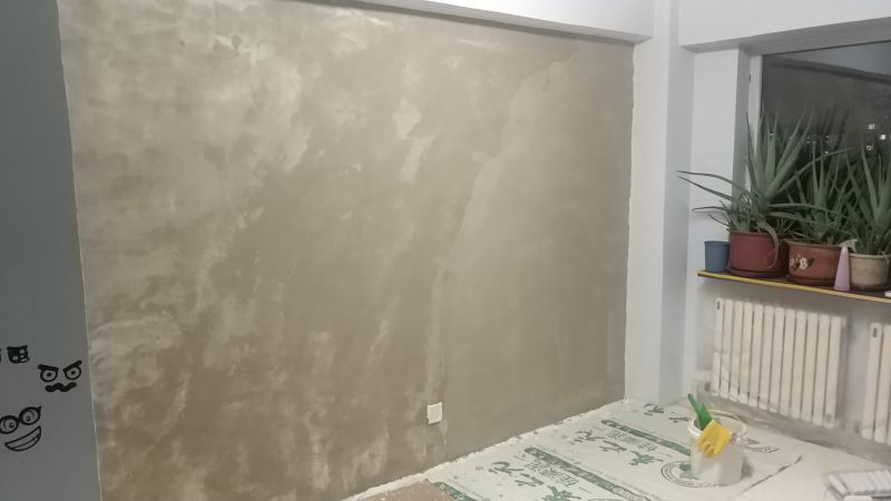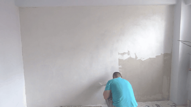 上期把墻面進(jìn)行了封底,雖然已經(jīng)做了隔離,但是還不能做直接裝飾層,因?yàn)樗嗌皾{層是屬于墻體,并不平整,即使?jié)L了兩層隔離也只是薄薄一層,所以在做面層之前,需要先用石膏進(jìn)行填縫,然后再用膩?zhàn)舆M(jìn)行抹平。