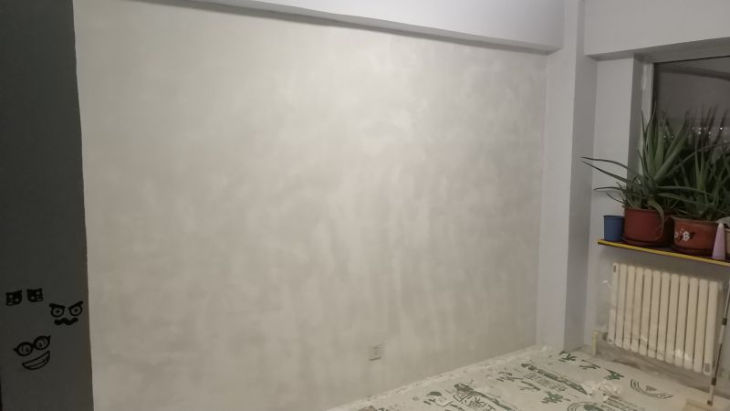 在封底的丙烯酸防水完全干燥后,我們就可以用石膏進(jìn)行填縫了,其實(shí)就是讓墻面更加平整。我們選擇的就是普通石膏,加水?dāng)嚢杓纯?。用抹子配合托板進(jìn)行平涂施工,一遍就行。因?yàn)槭瞧酵?,所以干燥時(shí)間比較長(zhǎng),我晾了一晚,也算干透了。